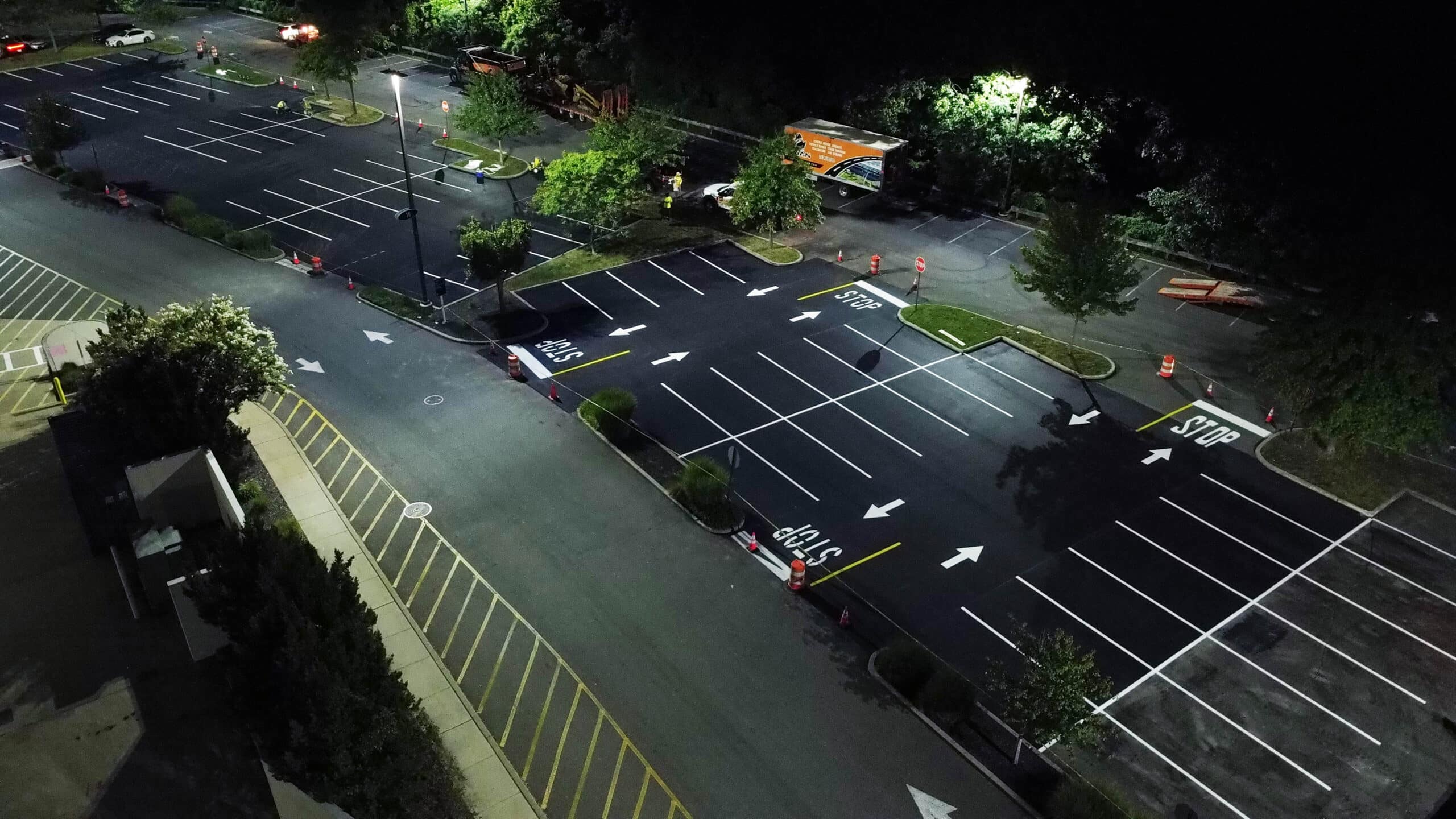 Line striping to make traffic flow clear and highlight ADA-compliant spaces.